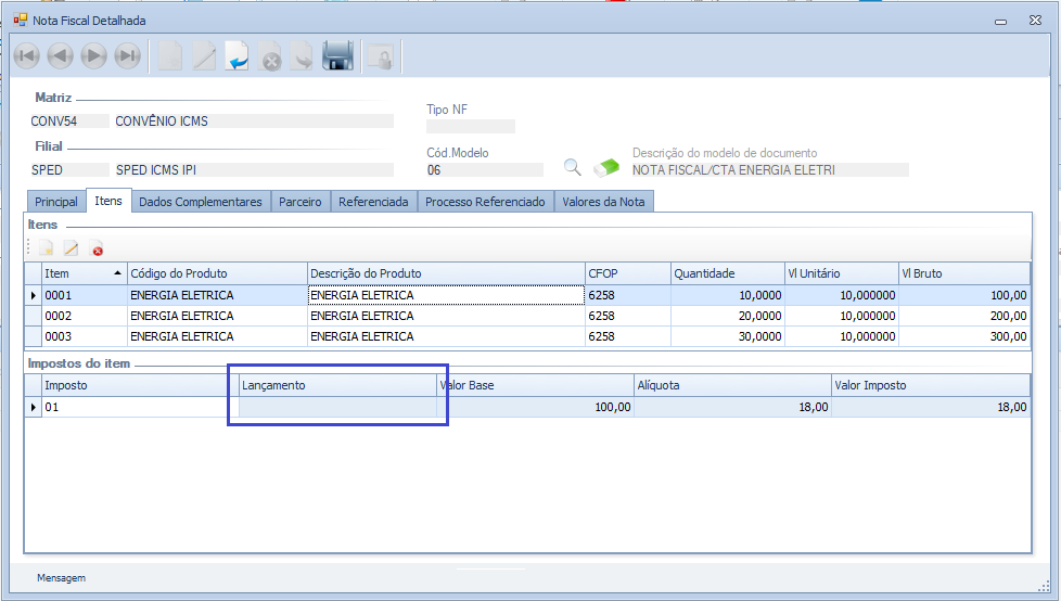1 - Ao inserir mais de um item na nota fiscal detalhada, apagava-se a informação do tipo de lançamento do primeiro item.