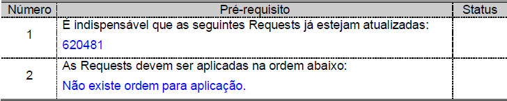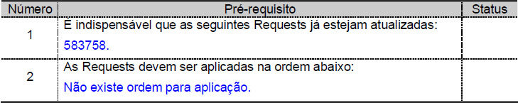 É necessário aplicar as requests e seus pré-requisitos da Nota 000652.