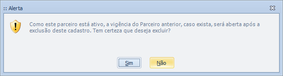 Validação apresentada nesta situação, na exclusão do Parceiro: