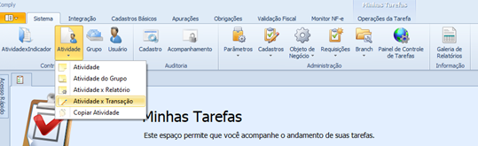 Para acesso a tela "Parametrização por Tipo de Imposto " é necessário liberar o processo através da tela Atividade x Transação.