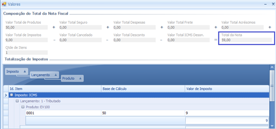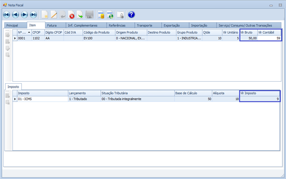 Cód. Imposto: Informar o código do imposto que será somado ao total da nota fiscal.