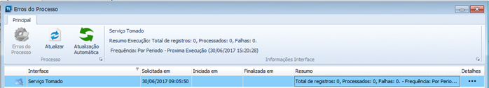 - Melhorias para as Tela de Execução de Interface e Erros do Processo, para exibição das informações da Execuções das Interfaces: