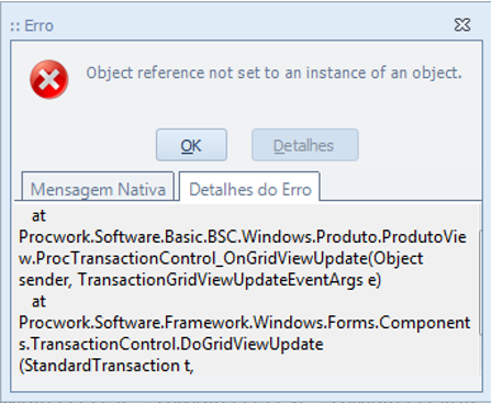 Descrição da Nota: Correção de problema ao abrir tela de Produto.