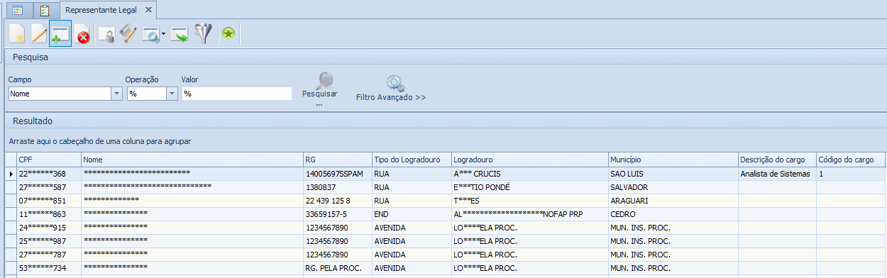 Somente o usuário máster, ou seja, que tenha permissão, visualizará os dados sensíveis sem máscara.