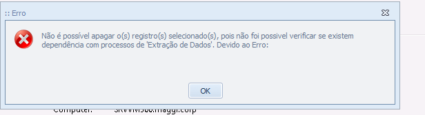 Ao tentar excluir um registro parametrizado na tela de Sistemas Remotos, o usuáio se deparava com o seguierro: "Não é possível apagar o(s) registro(s) selecionado(s), pois não foi possível verificar se existem dependência com processos de 'Extração de Dados'".