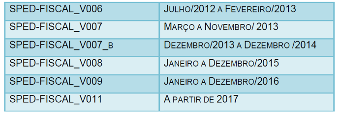 - Pacote SPED-FISCAL_V011: utilizar a partir de Janeiro/2017.