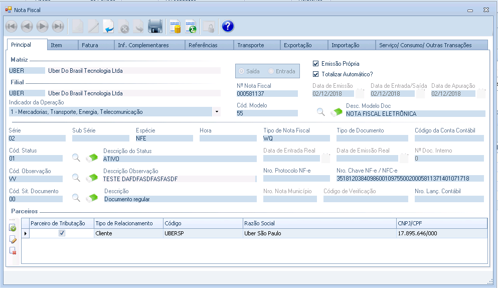 Funcionalidade: NOTA FISCAL