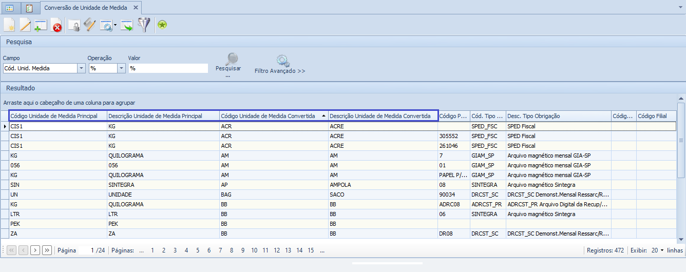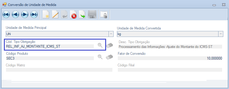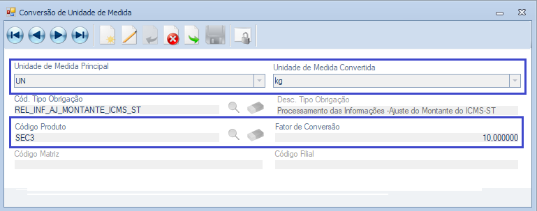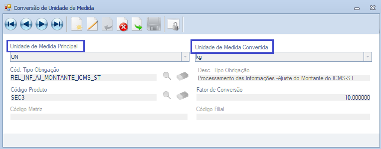 Melhorias realizadas na Tela Conversão de Unidade de Medida com atualização do nome de quatro campos e centralização para não haver espaços.