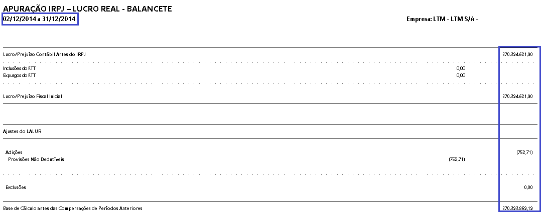 Quando a data inicial das apurações não era o primeiro dia do período (exemplo: Casos de situação especial), as apurações eram geradas sem dados mesmo quando existiam dados na tela do LALUR-LACS:
