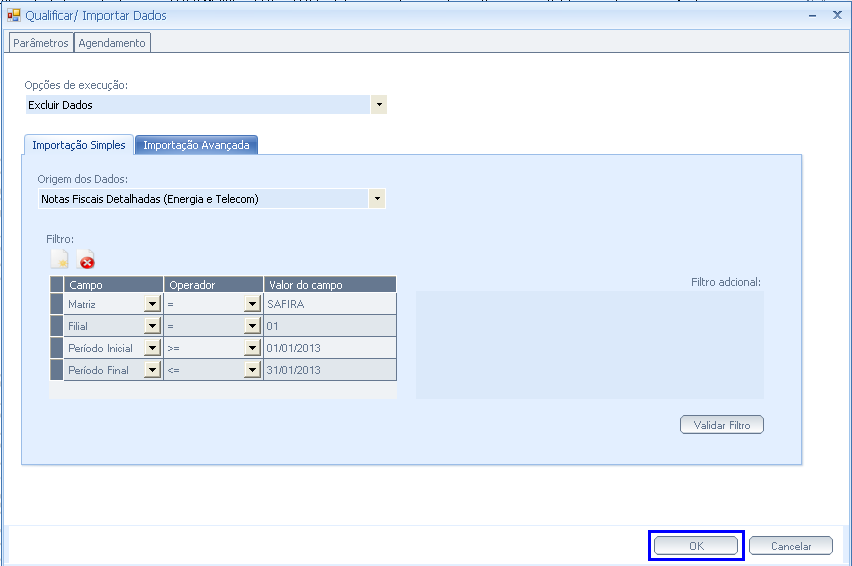Importante: Esse controle não é realizado quando a ‘Opção de Execução’ for ‘Qualificar Dados’
