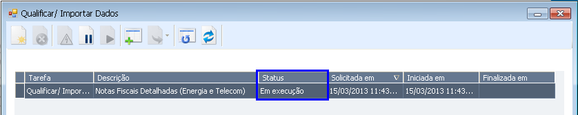 Se clicar em “Não” a tela acima fechará e retornará para a tela que mostra as tarefas em execução.