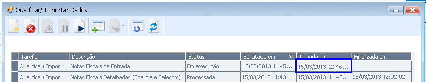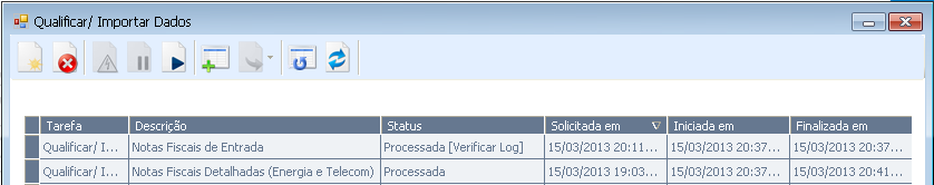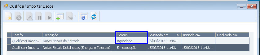 Caso a tarefa anterior ainda estiver em execução depois de uma hora, então, a nova tarefa que ficou agendada não será executada, seu Status será alterado para “Processada [Verificar Log]”.