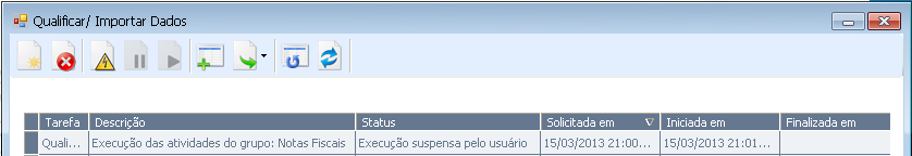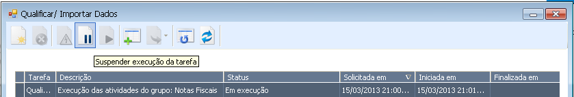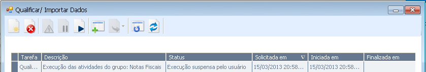 Caso esse processo esteja sendo executado pela opção 'Importação Avançada', então a próxima origem que for executada após solicitar o suspender não será executada, a tarefa será suspensa. Como exemplo: