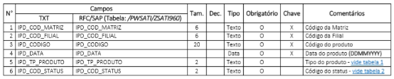 Feito a revisão do arquivo que especifica os dados de configuração padrão de Layout dessa interface Produto TXT, RFC e SAP PI/PO.