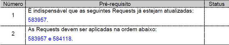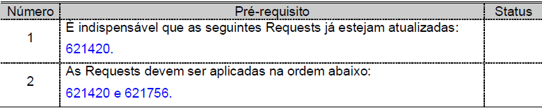 É necessário aplicar as requests e seus pré-requisitos da Nota 001527.