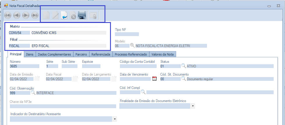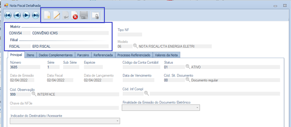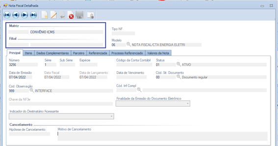 1 - Ao incluir uma Nota Fiscal na tela 'Nota Fiscal Detalhada', salvar e abrir novamente sem sair da tela, ocorriam os erros demonstrados abaixo nos campos Matriz e Filial: