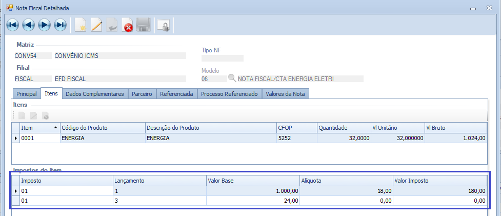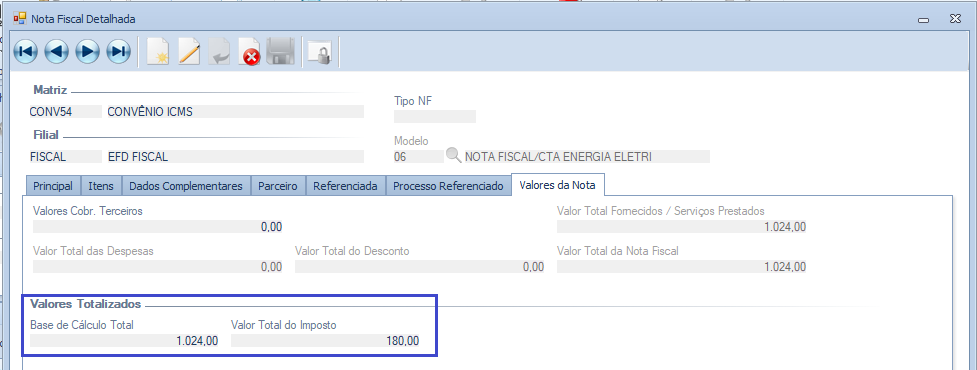 1 - Melhoria realizada nos campos Base de Cálculo Total e Valor Total do Imposto da aba 'Valores da Nota' para calcular o valor dos campos automaticamente, considerando a soma das bases e impostos, do Imposto ICMS (01) com tipo de lançamento 1 – Tributado e 3 - Outros lançados nos itens da Nota Fiscal.