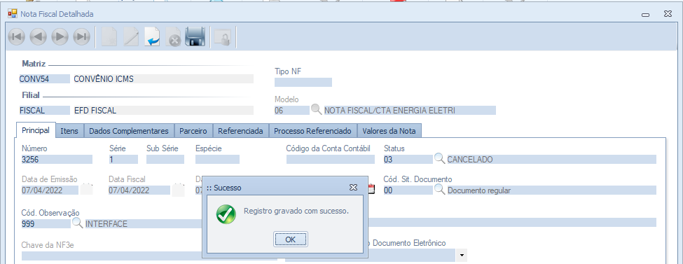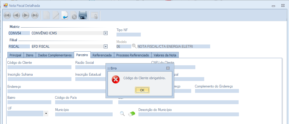 2 - Retirada a obrigatoriedade de informar um Parceiro para Notas Fiscais canceladas.