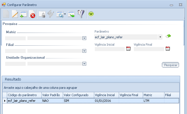 Criado o parâmetro “ecf_lair_plano_refer” na tela de Configurar Parâmetro.