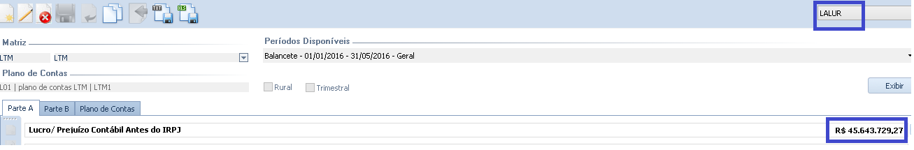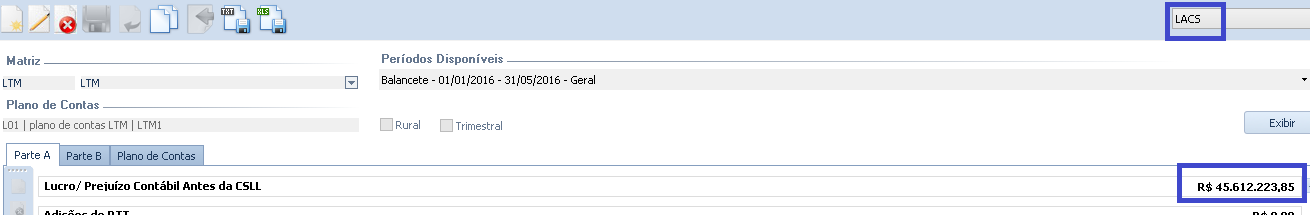 - Tratamento efetuado na tela do Lalur - Lacs para considerar o valor do plano referencial como Lucro/Prejuízo antes do imposto.