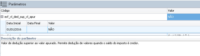 Definido como “NÃO” indica que o valor de deduções não pode ser superior ao valor apurado.