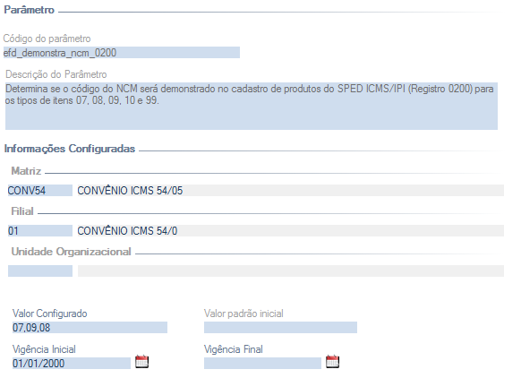 Para este tratamento foi criado o parâmetro efd_demonstra_ncm_0200 que, quando não parametrizado, fará com que o registro 0200 não demonstre o NCM para os produtos com os tipos de itens mencionados.