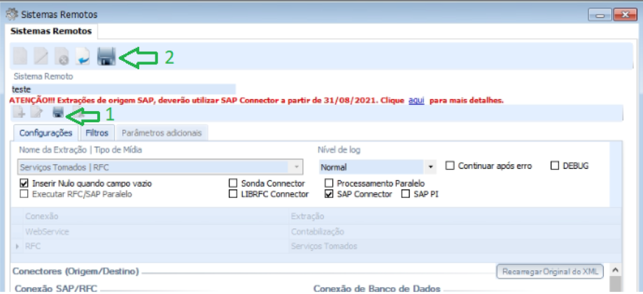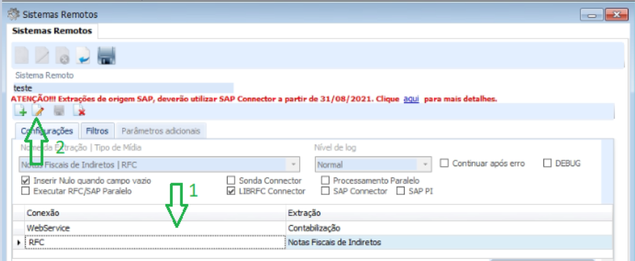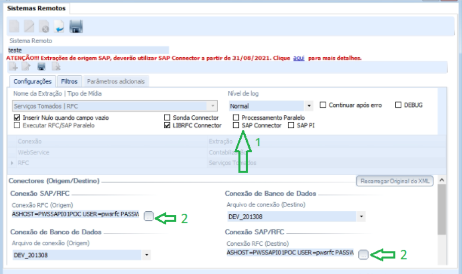 Descrição da Nota: Componente Extração: Descontinuação da LIBRFC, postergação da data final de suporte no processo de Extração para 31/08/2021, procedimentos para instalação e o SAP Connector e ajuste das configurações nos sistemas remotos.