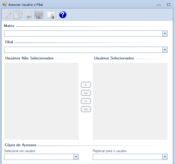 A liberação do acesso é feito pela tela abaixo Associar Usuário X Filial.
