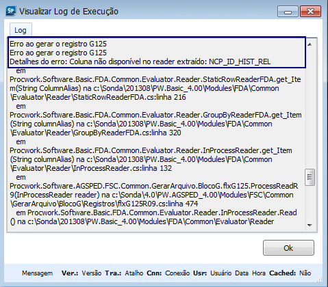 Ao gerar o arquivo com o Registro G125 está ocorrendo o seguinte erro: