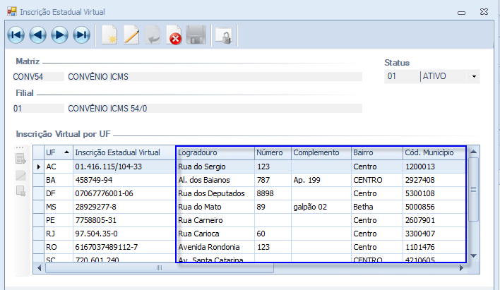 A inclusão dos campos supracitados foi necessária para a demonstração dos campos 09 (UF) e 11 (COD_MUN) do registro 0000 e dos campos 03 (CEP), 04 (END), 05 (NUM), 06 (COMPL) e 07 (BAIRRO) do registro 0005 da EFD ICMS/IPI, quando gerada por Inscrição Estadual Virtual em atendimento do Convênio 52/2005, que trata do rateio na prestação de serviços não medidos de televisão por assinatura e o tomador do serviço está em Unidade Federativa distinta do prestador.
