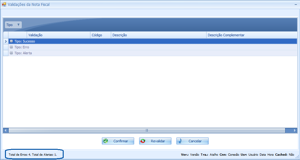 Descrição da Nota: Realizados os tratamentos: na Validação 00090 - Validação do Imposto Tributado, para que seja apresentado corretamente o sequencial do item. Tratamento ao revalidar algumas Notas Fiscais. Na edição da Nota Fiscal a partir da tela de pesquisa. Exibição do número de inconsistências (Erro/Alerta) na tela de Validações da Nota Fiscal.