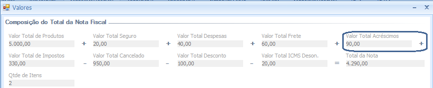 Para melhor identificação destes valores, foi incluído novo campo na tela, em Valores Totais da Nota Fiscal.
