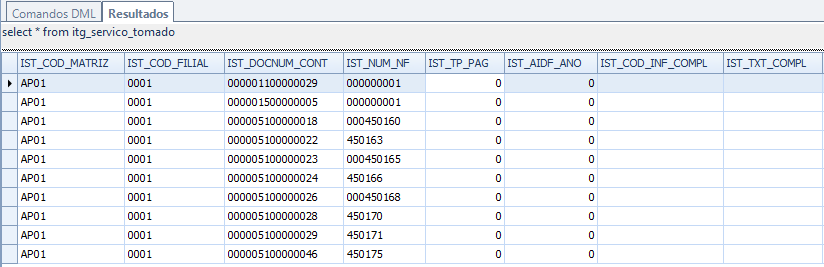 2 - Para clientes que utilizam banco de dados oracle na extração Serviços tomados poderia apresentar este erro: