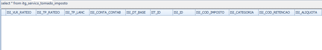 Tabela ITG_SERVICO_TOMADO_IMPOSTO sem registros