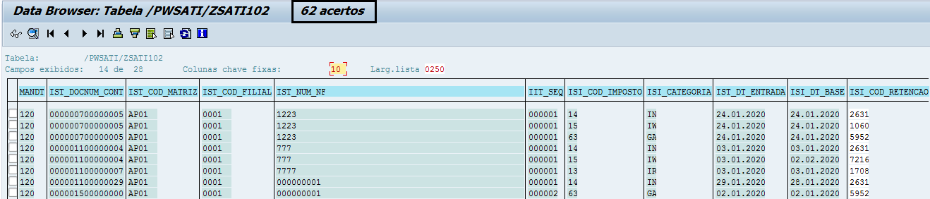 Tabela intermediária /PWSATI/ZSATI102 (Imposto serviço tomado SAP)