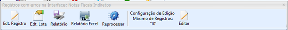 2) Implementado na tela de Erros do Processo, o controle que permitirá a configuração da quantidade máxima de registros para as funcionalidades de Edição de Registros “Edt. Registro” e Edição em Lote “Edt. Lote”.