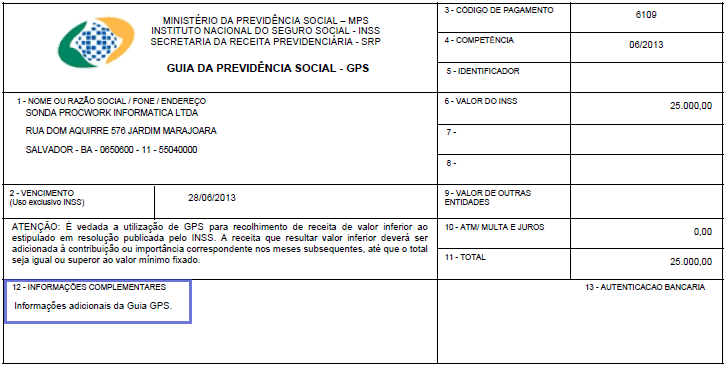 Descrição da Nota: Alteração na exibição de campos da Guia GPS.