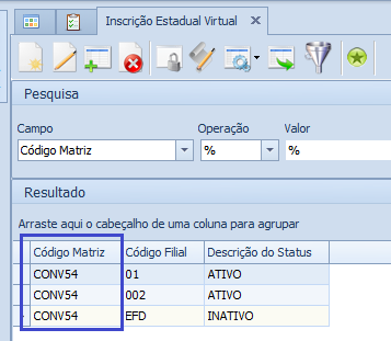 Melhoria para quando for efetuar pesquisa ou inclusão nas telas: Centralizar Dados, Unidade Organizacional, Inscrição Substituição Tributária, Transferência de Estabelecimento, Inscrição Estadual Virtual, Produto, Alíquota ICMS por Produto, Conversão de Códigos de Produtos, Conversão de Unidade de Medida, Movimento de Estoque, Ordem de Produção, Local de Estoque, Parceiro, Lista Técnica, Configurar Parâmetros e Valores Agregados Por Município, exibir os dados de Matriz e Filial conforme configuração na tela Associar Usuário x Filial.