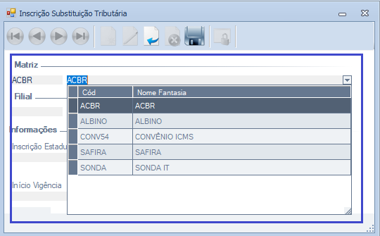Descrição da Nota: Melhoria para quando for efetuar pesquisa ou inclusão nas telas: Centralizar Dados, Unidade Organizacional, Inscrição Substituição Tributária, Transferência de Estabelecimento, Inscrição Estadual Virtual, Produto, Alíquota ICMS por Produto, Conversão de Códigos de Produtos, Conversão de Unidade de Medida, Movimento de Estoque, Ordem de Produção, Local de Estoque, Parceiro, Lista Técnica, Configurar Parâmetros e Valores Agregados Por Município.