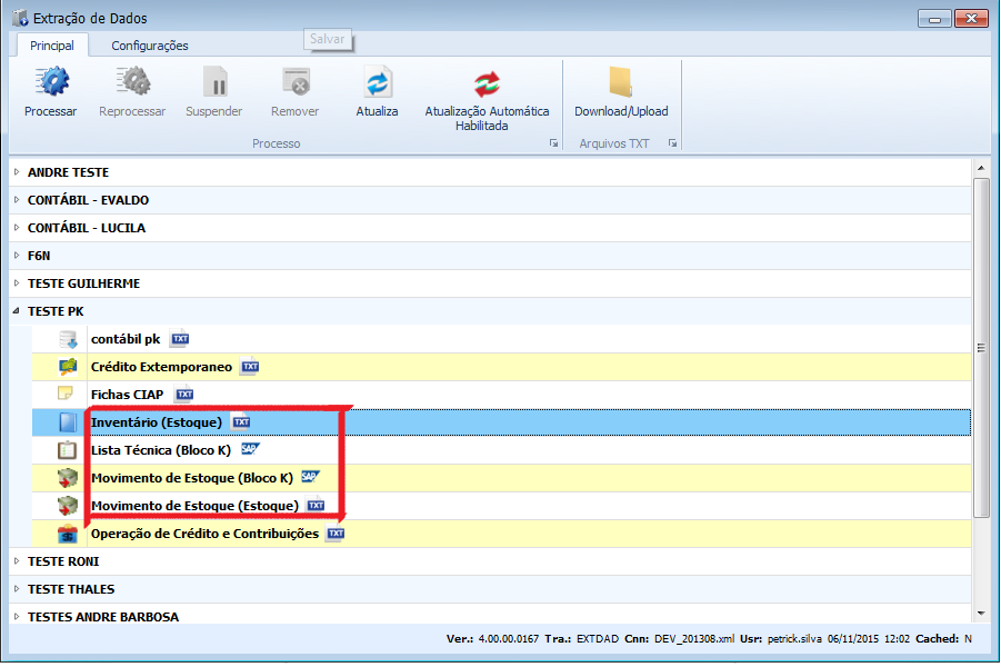 * - Estoque => Essa extração do tipo Arquivo TXT, foi segregada e substituida pelas novas extrações denominadas por : Movimento de Estoque (Estoque), Inventário (Estoque) e Saldo de Estoque (Estoque).