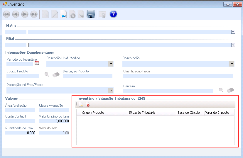 Além do preenchimento manual, é possível importar estas informações complementares do Inventário para a base corporativa através de um novo serviço de Interface. Foi disponibilizado um layout na Nota 002085 para que seja efetuado o carregamento das informações. Para maiores esclarecimentos sobre este processo, favor consultar a referida Nota.