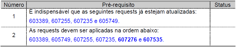 É necessário aplicar as requests e seus pré-requisitos das Notas 000475, 001723 e 002154.