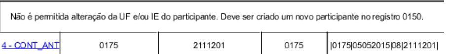 Assim, quando houver mudança de UF (Campo 08 do Registro 0150), ao invés de gerar um registro 0175 para demonstrar esta alteração, deve ser gerado um registro 0150 com o novo código de participante.