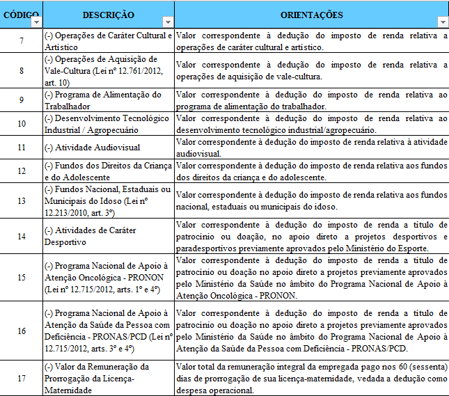 Linha "Imposto de Renda após adicional (IRPJ Apurado + Adicional)" - "Incentivos Fiscais utilizados" - "(-) Valor da Remuneração da Prorrogação da Licença-Maternidade (Lei nº 11.770/2008, art. 5º)".