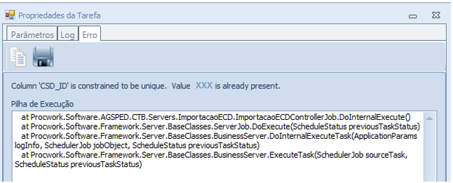 Ocorriam erros na importação da ECD no banco de dados SQL Server: