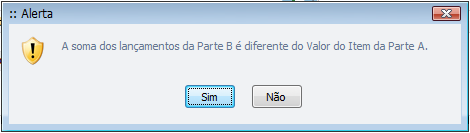 Clicando em Sim, o sistema permitirá o recálculo e gravação de dados divergentes e que possivelmente gerarão erros de inconsistência no PVA. Clicando e Não, retornará para a tela de lançamento solicitando a correção dos valores.