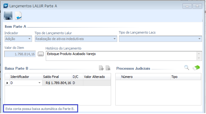 Tratamento na funcionalidade LALUR/LACS para permitir mais de um Identificador Parte B para um lançamento da parte A, quando este não for oriundo de baixa automática.