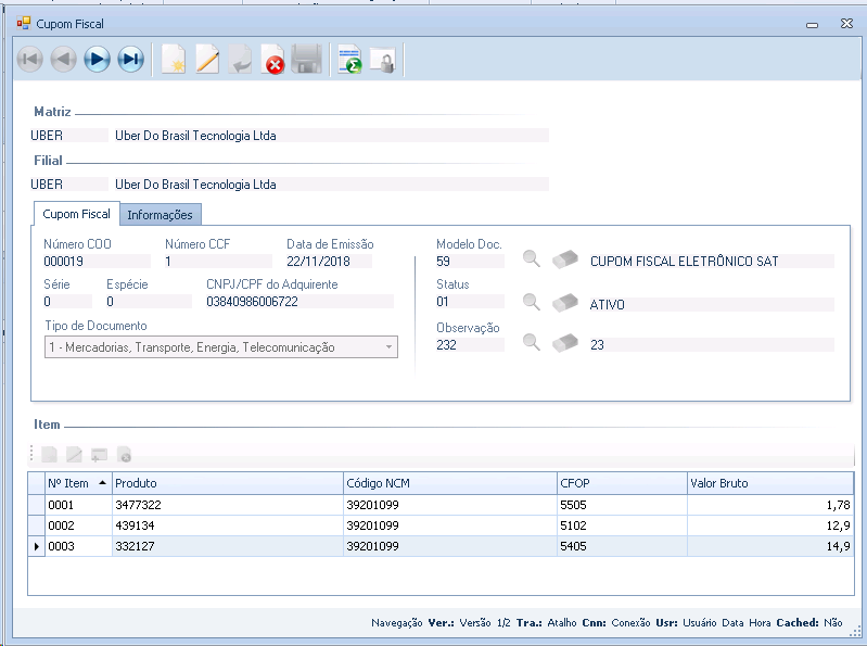 Descrição da Nota: Tratamento para os campos chaves do Cupom Fiscal