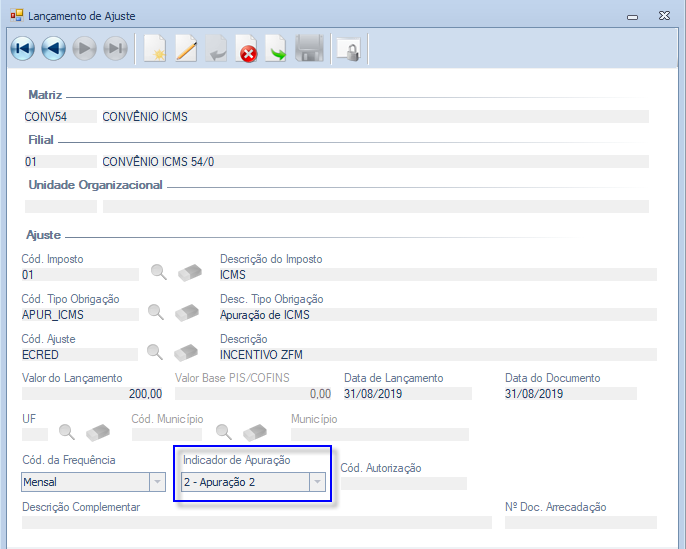 Nesta situação, será verificado se o campo “Indicador de Apuração” do lançamento de ajuste é igual ao campo “Cód. Sub Apuração” da tela “Associação dos Ajustes”.