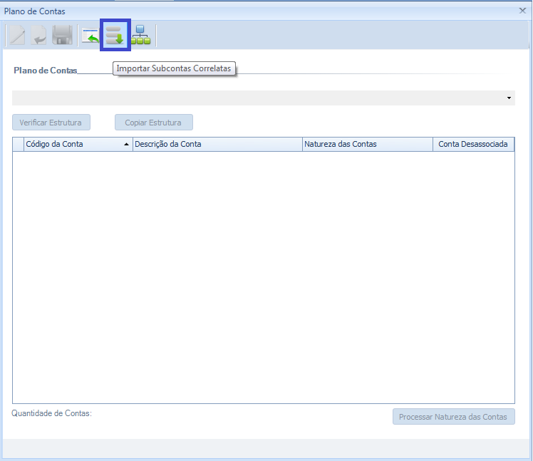 Ao clicar no botão Importar Subcontas Correlatas será apresentada a tela abaixo:
